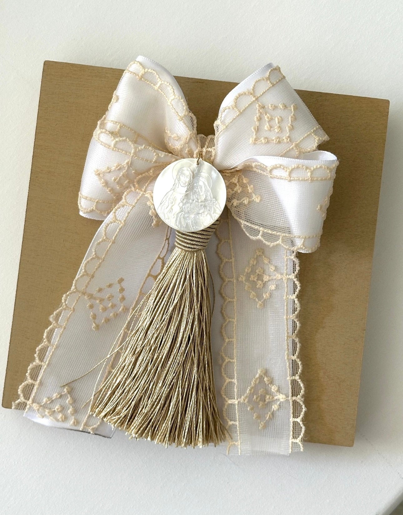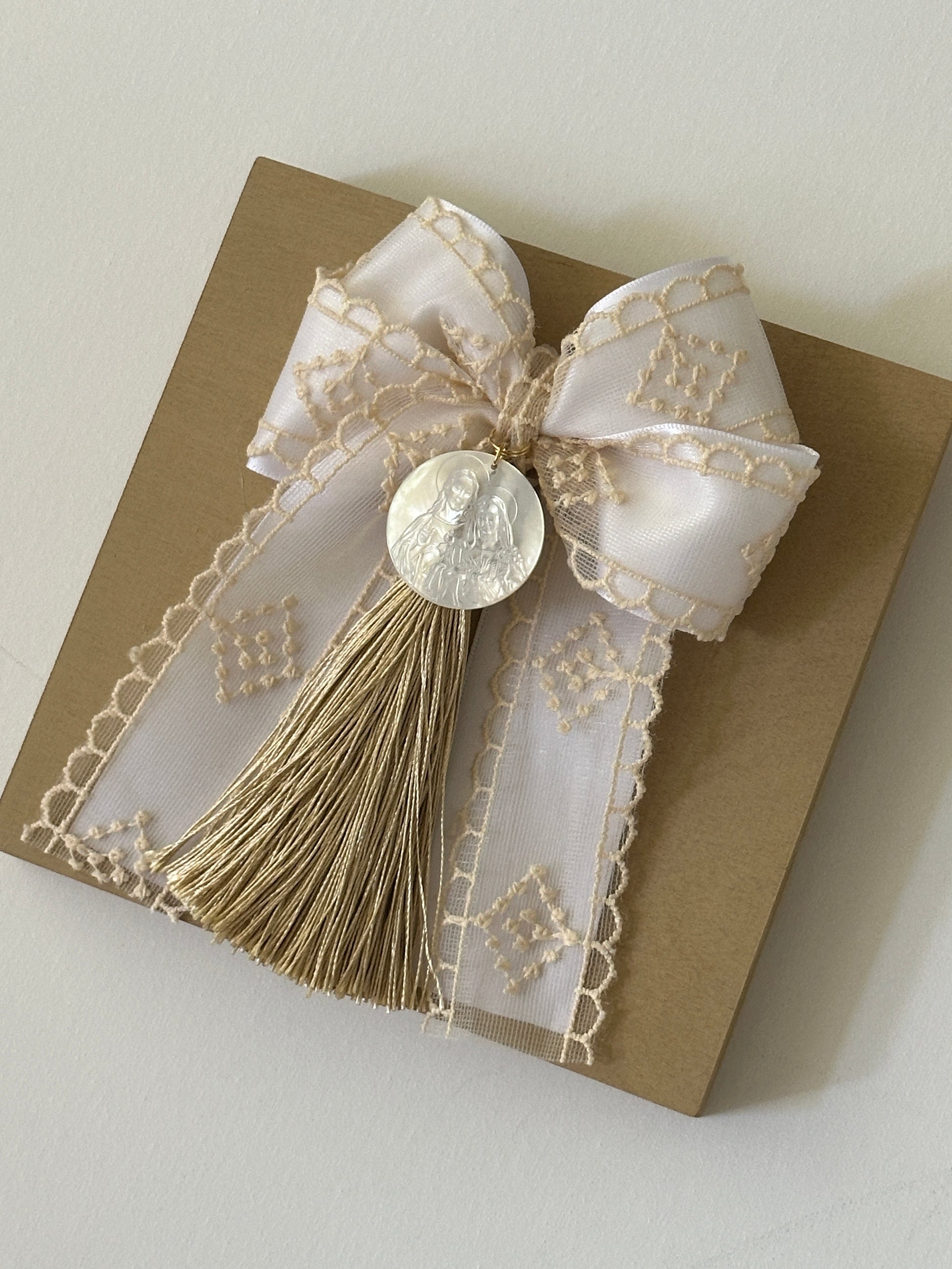 Handmade picture with a bow and medal for the baby's room. Perfect for adding a special touch to your little one's space. Made with love and attention to detail.